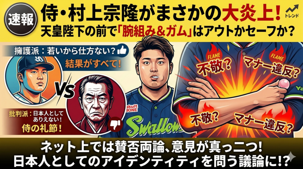 いや〜、びっくりしたよね!あの「村神様」ことヤクルトの村上宗隆選手が、今ネットでとんでもないことになってるの。野球の実力じゃなくて、まさかの「マナー」でここまで燃え広がるとは誰が予想した?