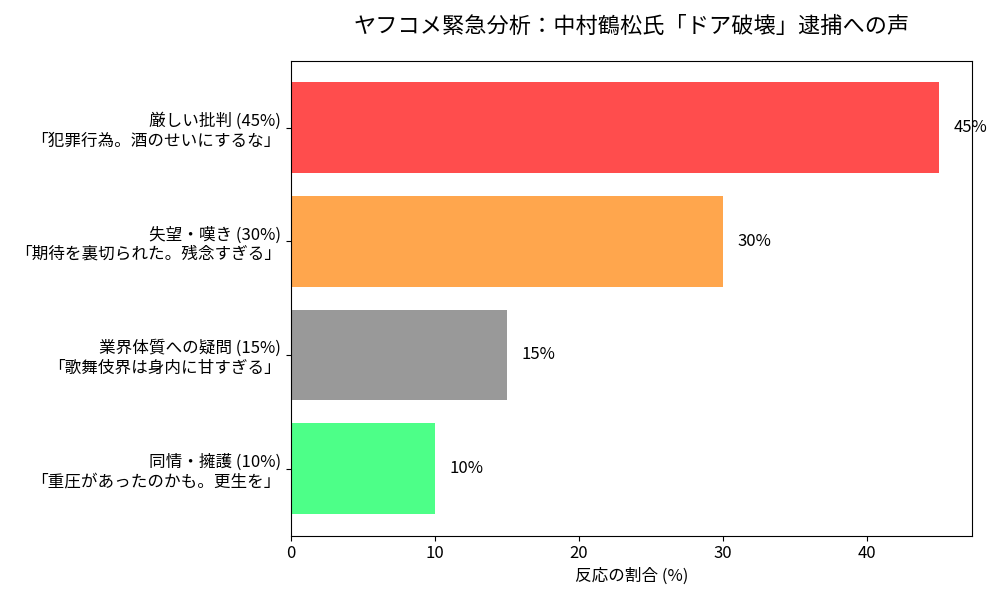 特に、歌舞伎という伝統芸能を背負う立場、しかも「中村屋」という名門の屋号を背負う身としては、その責任は重いと言わざるを得ない。今回の事件は、単なる一俳優の不祥事にとどまらず、歌舞伎界全体のイメージ失墜にもつながりかねない深刻な事態なんだ。