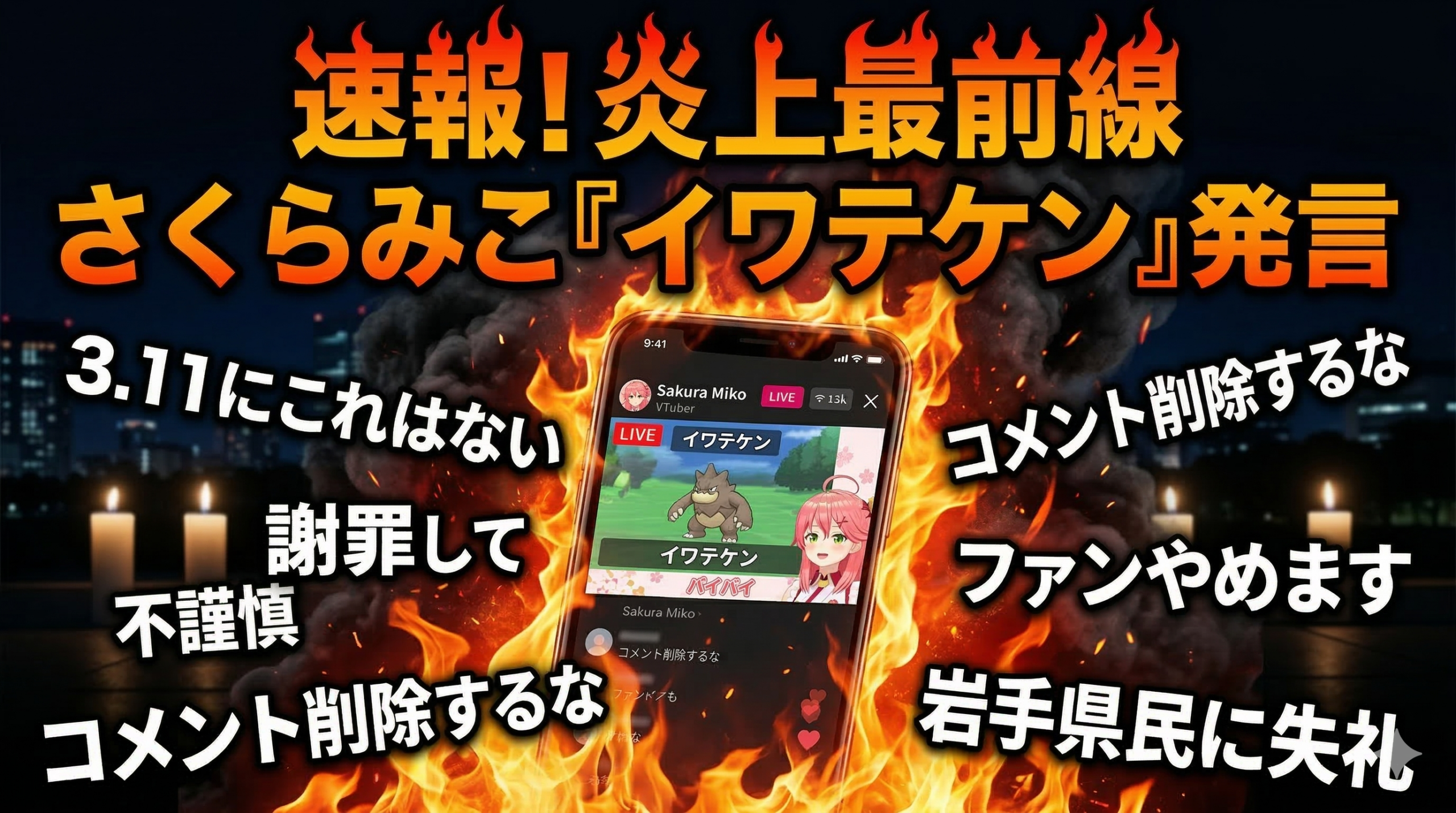 このフレーズが、東日本大震災の発生日に、甚大な被害を受けた「岩手県」を連想させるとして、リアルタイムで視聴していたユーザーの凍りつかせたんだ。 「よりによって、なぜ今日その名前で、その言葉なのか?」 偶然だとしても、あまりに無神経すぎる。この瞬間、コメント欄は一気に阿鼻叫喚の渦へと飲み込まれていった。